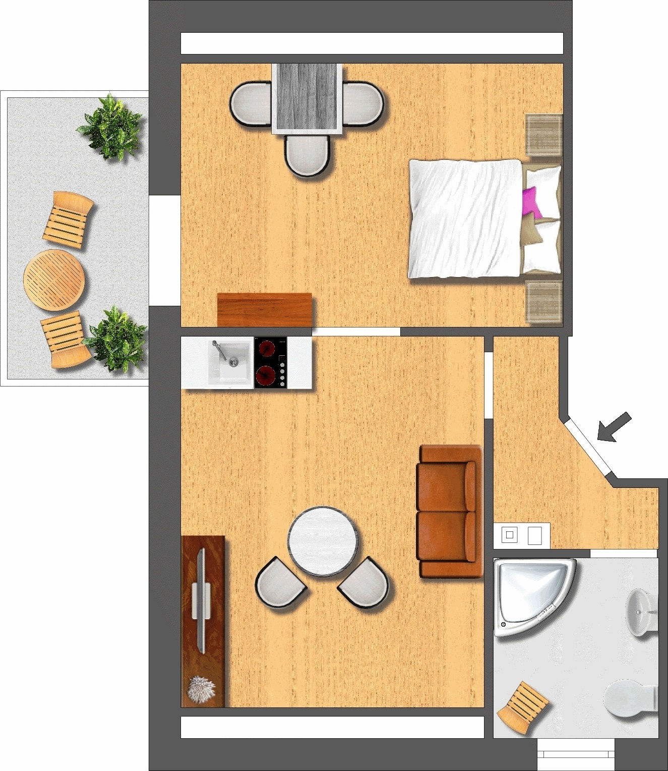 Die Ferienwohnung 1 überzeugt durch eine helle, freundliche Atmosphäre und eine Ausstattung, die auf Komfort und Erholung ausgelegt ist. Auf ca. 36 m² erwartet Sie ein liebevoll gestalteter Wohnbereich, der Ruhe und Behaglichkeit ausstrahlt.