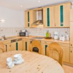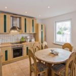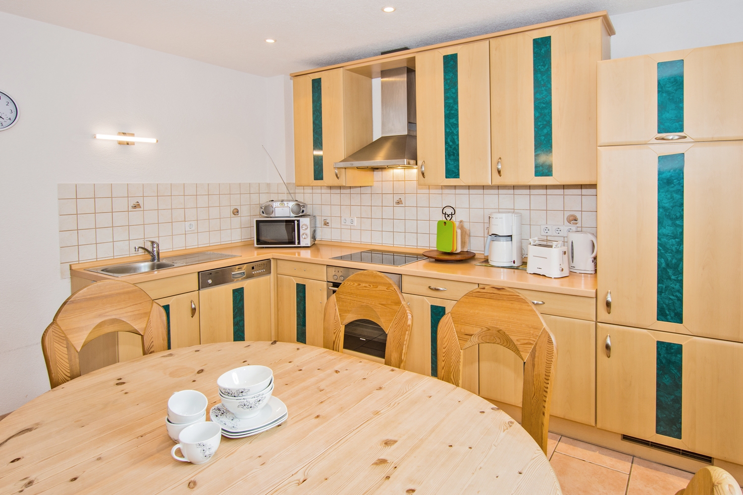 - große Küche mit Herd, Backofen, Kühlschrank, Geschirrspüler, Toaster, Kaffeemaschine, Wasserkocher
