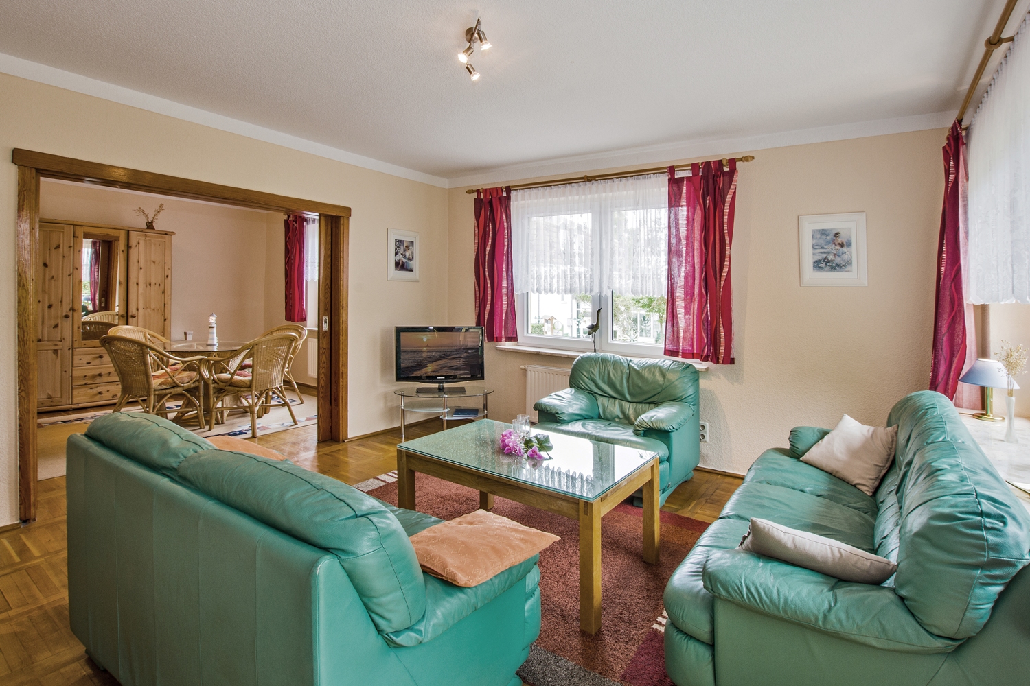 Großzügige Ferienwohnung mit viel Platz – nur 600m vom Sandstrand im Kaiserbad Bansin entfernt. Die modern eingerichtete Ferienwohnung bietet eine gehobene Ausstattung und viele nette Extras wie 2 Fernseher und WLAN (gratis). Etwa 100 qm des gepflegten Gartengrundstücks stehen Ihnen für gemütliche Abende im Freien zur Verfügung. Lohnenswert ist auch ein Besuch im Tropenhaus, wo sie nicht nur den Zoo besuchen können, sondern auch zur Mittags- und Abendzeit gut und kulinarisch essen können. Das sonnen-verwöhnte Seebad Bansin vereinigt Bäderarchitektur, lebhafte Einkaufsstraßen und fröhliches Strandleben mit den Wäldern und Seen des ruhigen Achterlandes. Diese reizvolle Kombination aus maritimem Ambiente und unberührter Natur zieht viele Besucher in ihren Bann.